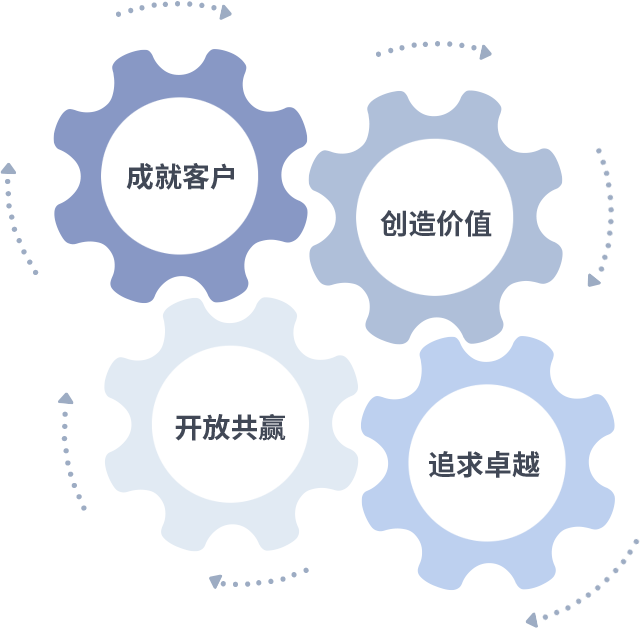 成就客户是一切决策的出发点,创造价值是衡量所有工作的标准,追求卓越是ag亚洲集团做事做人的态度,开放共赢是ag亚洲集团的格局也是最终的结果。价值观的齿轮环环相扣,推动着组织里的每个人不断向前。